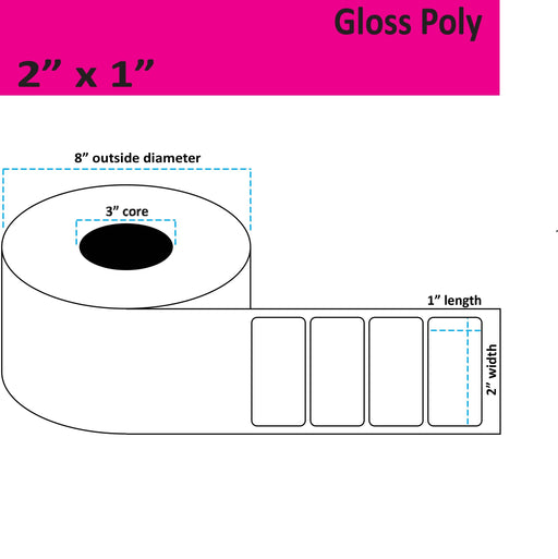 2" x 1" Gloss Poly Inkjet Label - 5,250 per Roll - 2 Rolls per Case - 3" Core - 8" Outer Diameter - No Perfs.