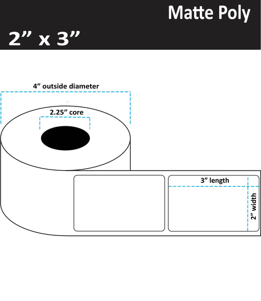2" x 3" Matte Poly Inkjet Label - 350 per Roll - 8 Rolls per Case - 2.25" Core - 4" Outer Diameter - No Perfs.