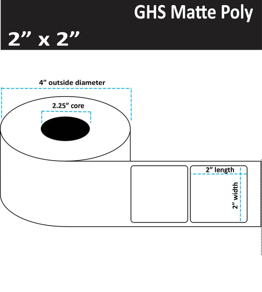 2" x 2" Matte Poly Inkjet Label - GHS / BS5609 Certified - 400 per Roll - 8 Rolls per Case - 2.25" Core - 4" Outer Diameter - No Perfs.