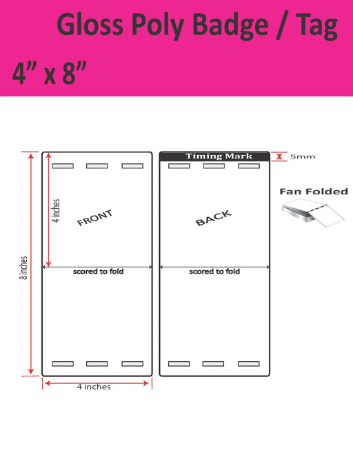 4" x 12" Gloss Poly Tag - 1,000 per Case - Folds to 4" x 6" - 500 per stack - 1,000 per carton - 3 Mirrored Holes -1 Timing Mark - Perfed.