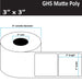 3" x 3" Matte Poly Inkjet Label - GHS / BS5609 Certified - 1,500 per Roll - 2 Rolls per Case - 3" Core - 8" Outer Diameter - No Perfs.