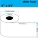 - 1 Case of 4" x 85' Continuous Matte Paper Inkjet Label - 12 Rolls per Case - 2.25" Core - 4" Outer Diameter - No Perfs.
