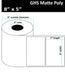 • 1 Case of 8" x 5" Matte Poly Inkjet Label - GHS / BS5609 Certified - 300 per Roll - 2 Rolls per Case - 3" Core - 6" Outer Diameter - No Perfs.